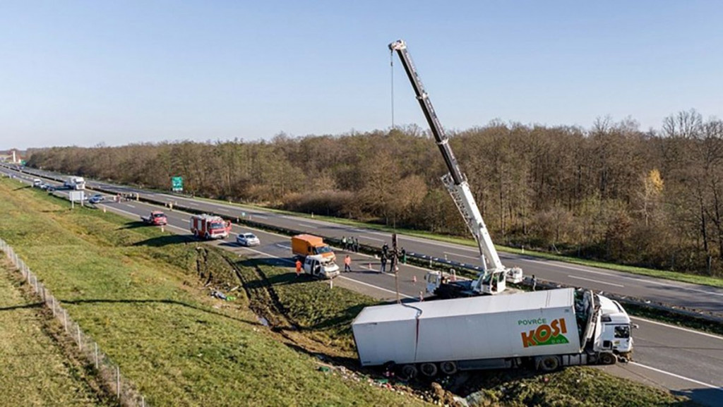Na 19. kilometru autoceste Zagreb-Split, iza odmorišta Desinec u smjeru Karlovca, došlo je do teške prometne nesreće u kojoj su sudjelovali tegljač (šleper) i kombi.
