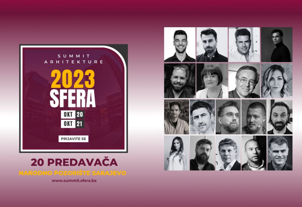 Sarajevo će u listopadu biti centar arhitektonske scene u BiH. Naime, 20. i 21.10.2023. u Narodnom pozorištu u Sarajevu bit će održan Regionalni summit arhitekture Sfera 2023 koji se organizira u suradnji sa komorama arhitekata, asocijacijama arhitekata, društvima arhitekata i arhitektonskim fakultetima iz BiH, Srbije, Hrvatske, Slovenije i Crne Gore.