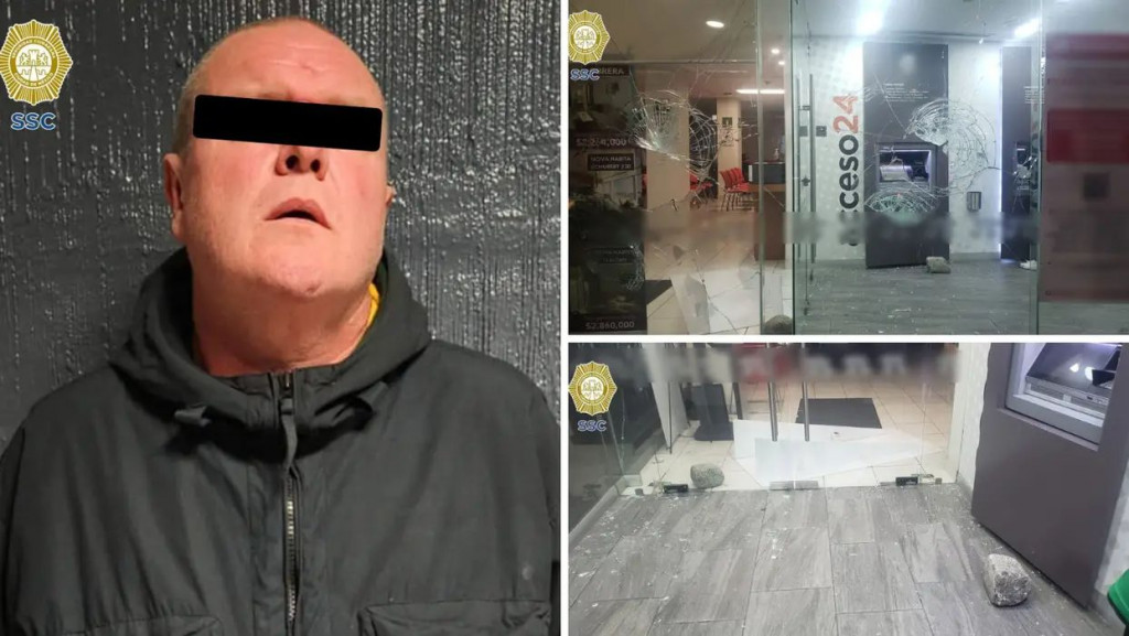 Muškarac, čije ime nije objavljeno, uhićen je nakon što su policijski službenici upozoreni radio vezom da je čovjek u četvrti Cuauhtémoc kamenom razbio staklo poslovnice u kojoj su se nalazili bankomati. Prostor s bankomatima se nalazi na raskrižju dviju ulica.