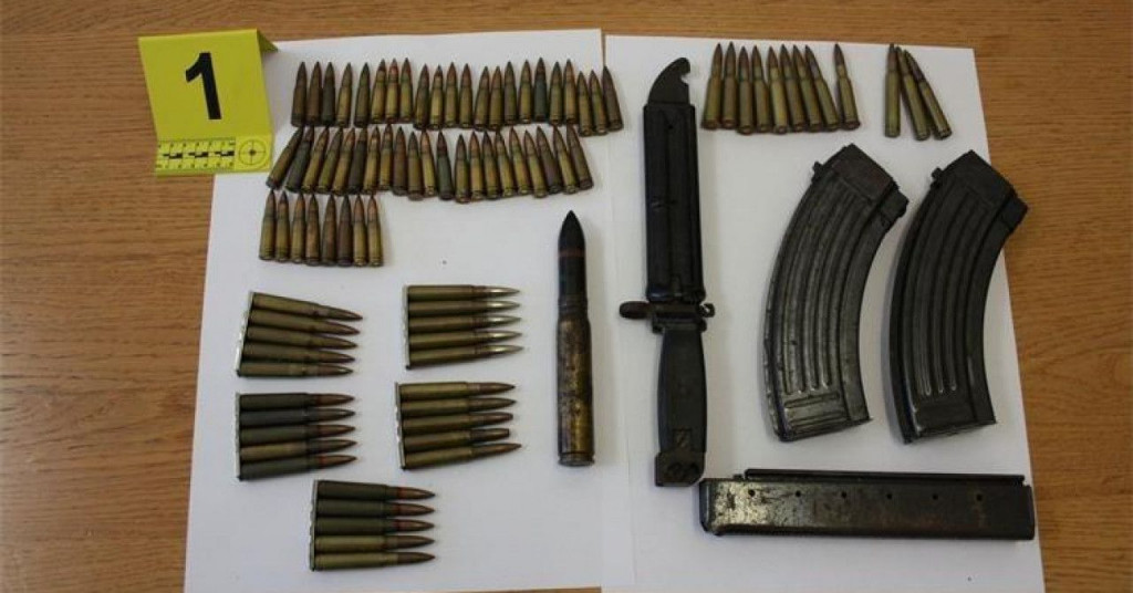 Pretragom je u pomoćnom objektu pronađeno: 65 komada streljiva vojnog podrijetla, 1 topovsko zrno, 2 spremnika za automatsku pušku, 1 spremnik za strojnicu i vojni bajonet za automatsku pušku AK-47 poznatiju i kao "kalašnjikov".