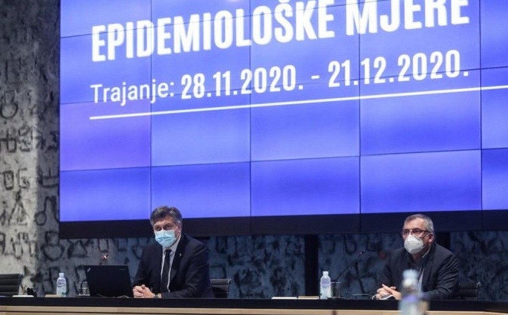 Premijer Andrej Plenković objavio je u četvrtak nove mjere za suzbijanje koronavirusa koje će stupiti na snagu u subotu, 28. studenoga, i trajati do ponedjeljka, 21. prosinca, a uključuju zatvaranje kafića i restorana, zabranu svadbi, sajmova i većine sportskih natjecanja.