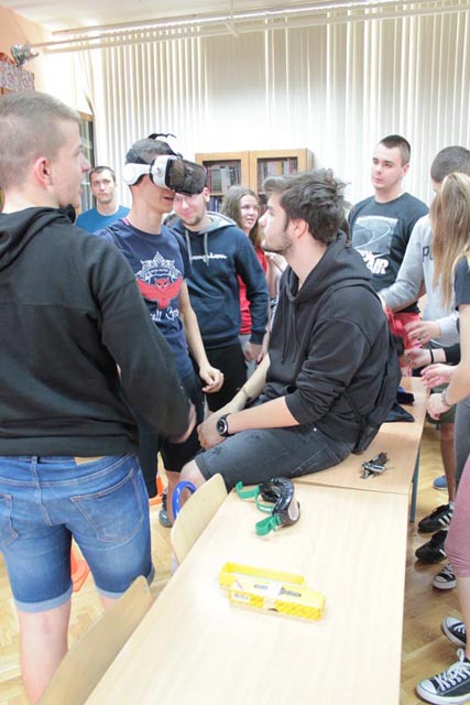 Nakon edukativnog i prevencijskog predavanja od strane djelatnika PU Osječko baranjska i provedenog mini poligona te isprobanih „pijanih naočala" i 3D naočala učenici su dijelili edukativno-prevencijske letke.