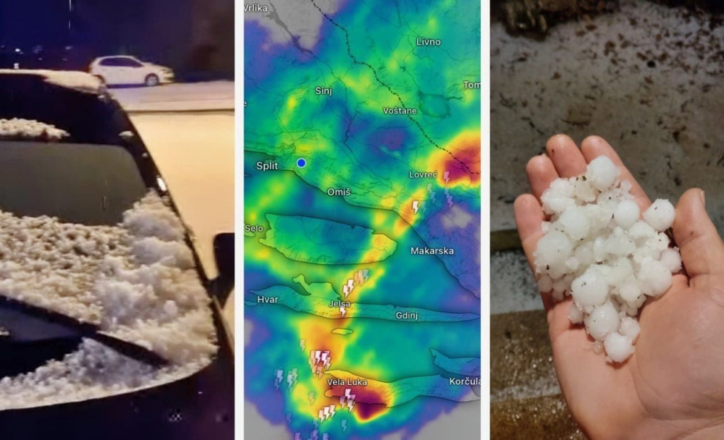 “Bilo je strašno, srećom nije dugo trajalo, a bez obzira na to što je tuča sve prekrila, nije bilo velikih zrna pa vjerojatno neće biti štete”, kaže čitatelj za Dalmaciju Danas. "Pet centara krupe na asfaltu", dodao je.