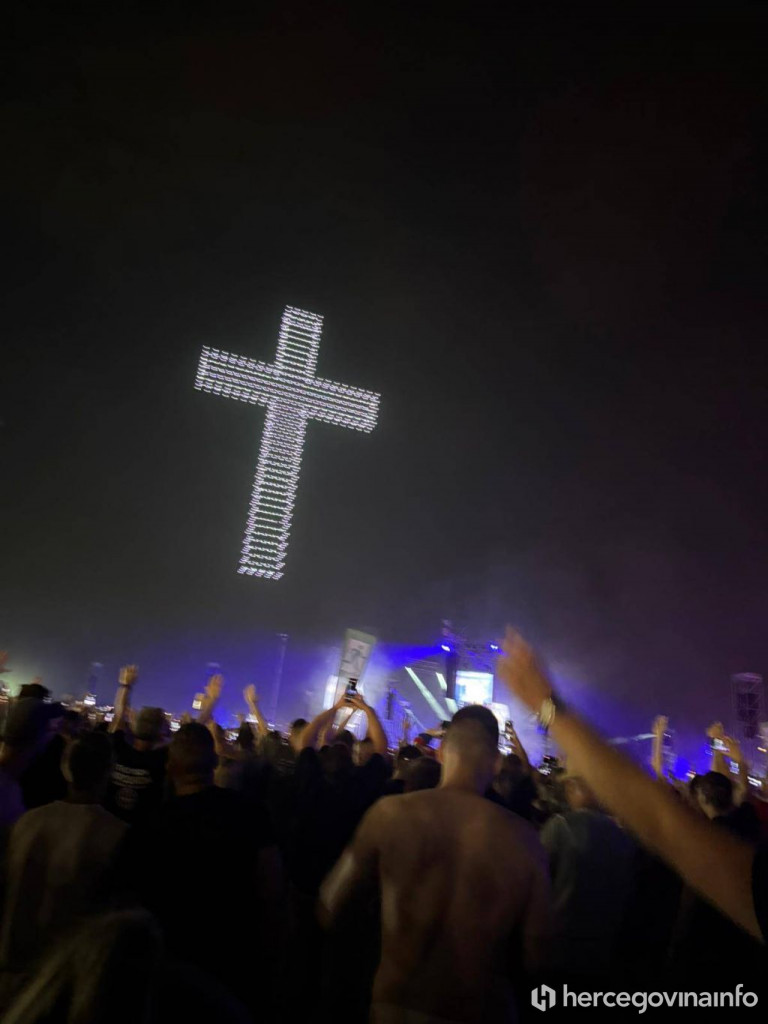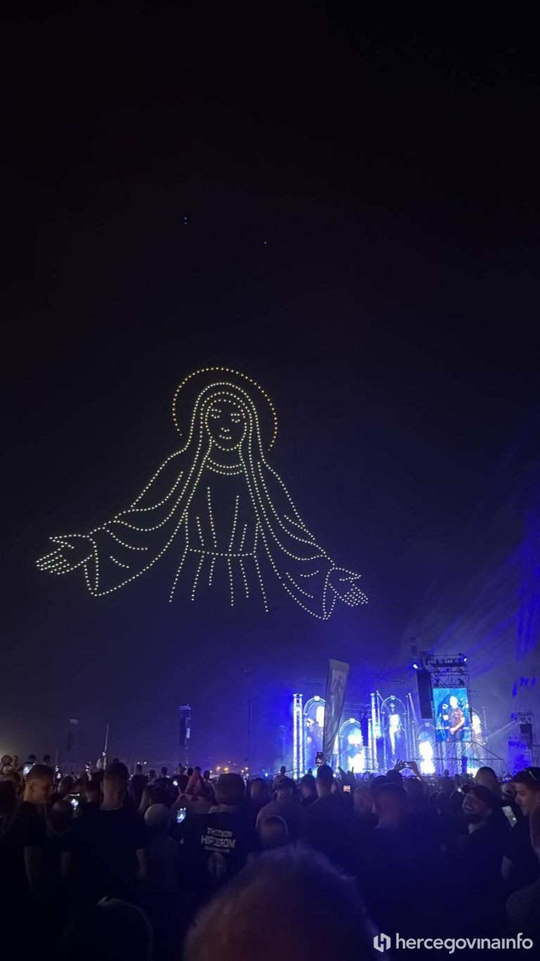 Posebnu pažnju izazvao je najavljeni Light-show, u kojem je publika, putem aplikacije, sinhronizirano uključila bljeskalice svojih mobitela. Potom su dronovi na nebu iscrtali Gospu i krunicu, dva anđela i na kraju križ u crvenoj, bijeloj i plavoj boji, uz hrvatski grb.