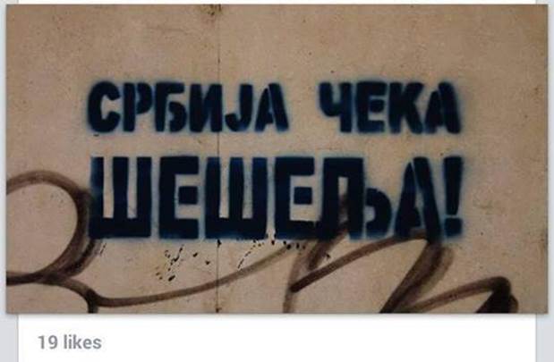"Vojvoda, kralju, dobrodošao", a drugi uz sliku na kojoj je ćiriličnim slovima ispisano "Srbija čeka Šešelja" stavio je "prikladan" komentar: "Krv nije voda, stiže vojvoda".