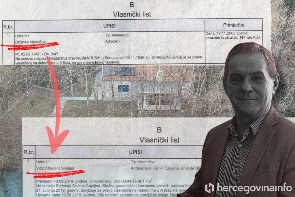 Podsjetimo, pašnjak pete klase, negrađevinsko zemljište u vodozaštitnom pojasu završio je u vlasništvu čapljinskog gradonačelnika Smiljana Vidića. On je na tom zemljištu, okruženom državnim parcelama, a udaljenom kilometar i pol od prvih kuća, sagradio vikendicu.