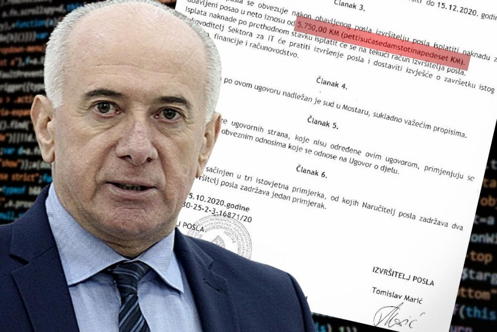 „Tomislav Marić je sporazumno prekinuo radni odnos s JP HT dd Mostar 28. 2. 2022. godine, a Damir Zelenika je sporazumno prekinuo radni odnos s JP HT dd Mostar 17. 7. 2022. godine“, potvrdili su nam iz HT-a. To praktično znači da je Marić bio zaposlenik HT-a dok je primao šest tisuća maraka teške ugovore i radio na Petom katu.