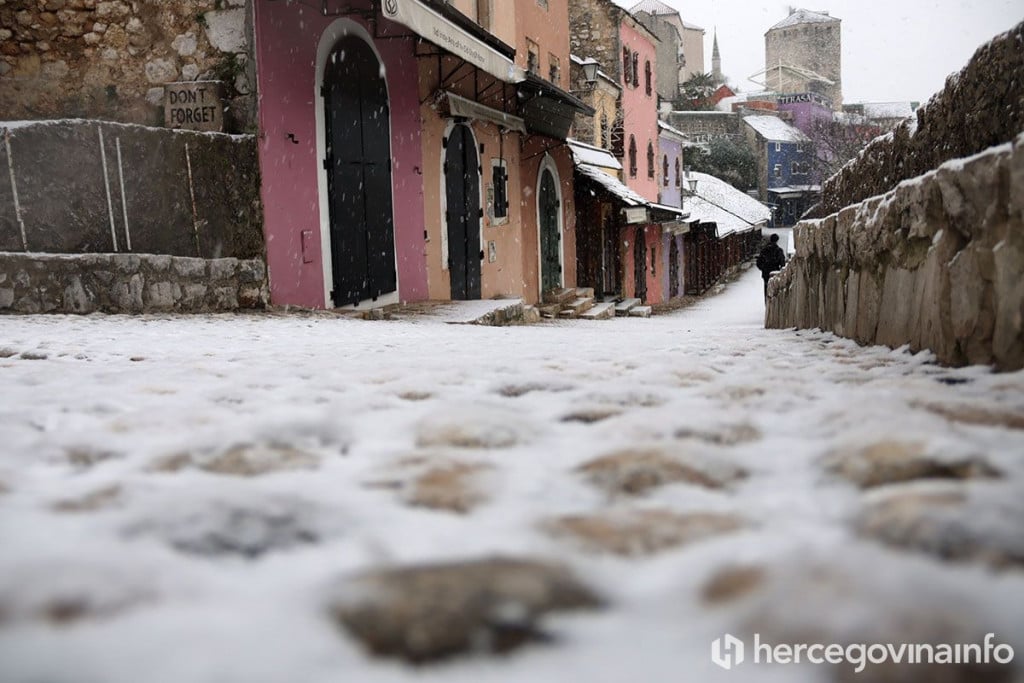 Mostar je rano jutros osvanuo pod snijegom, a bijeli pokrivač dao je poseban ugođaj Starom mostu i gradskim ulicama. Zimski prizori koji su rijetkost u ovom dijelu Hercegovine zabilježeni su u našoj fotogaleriji koja donosi atmosferu snježnog jutra iz različitih dijelova grada.