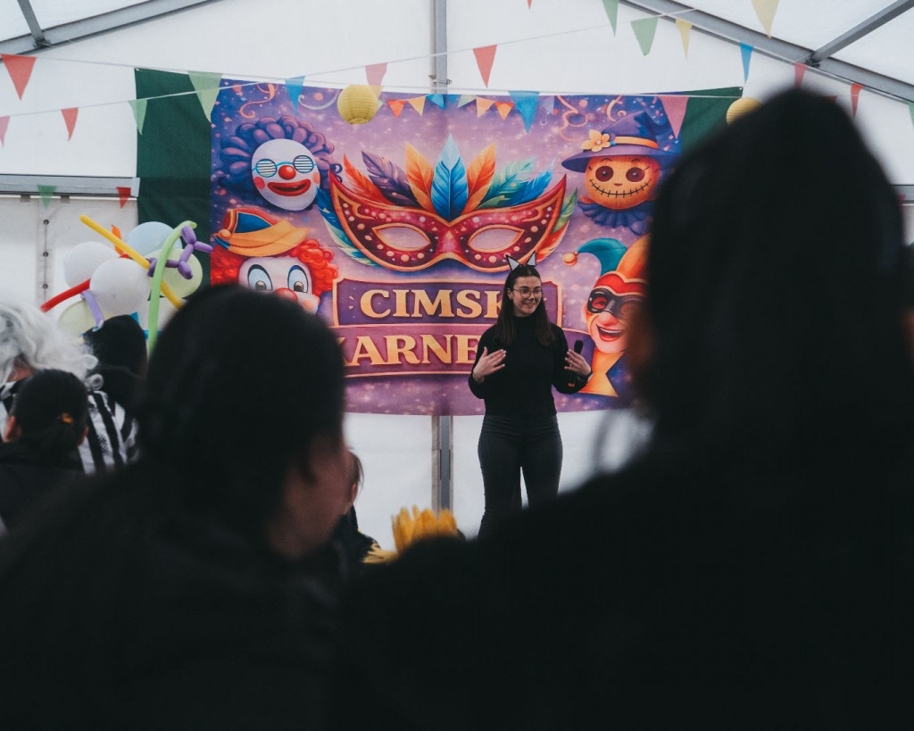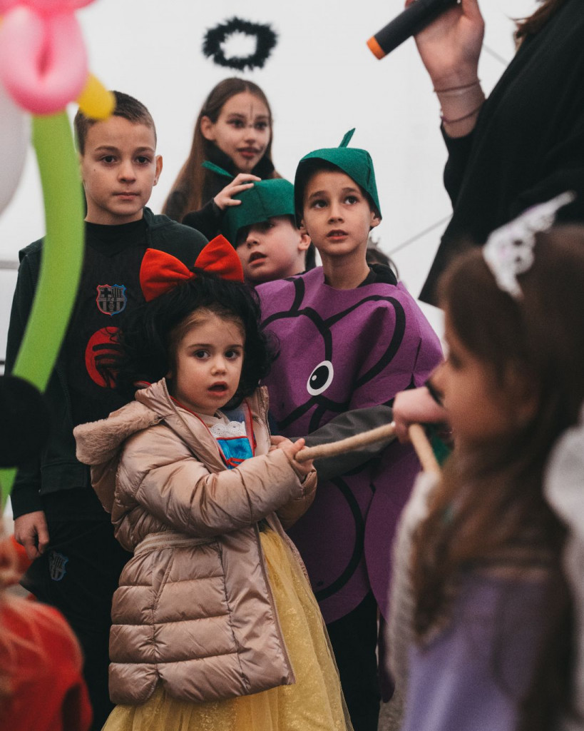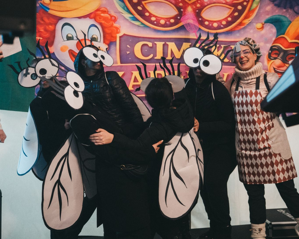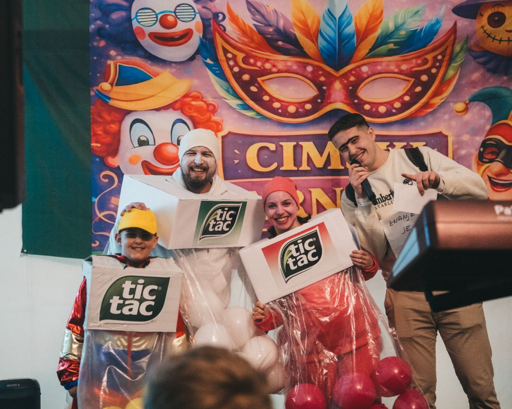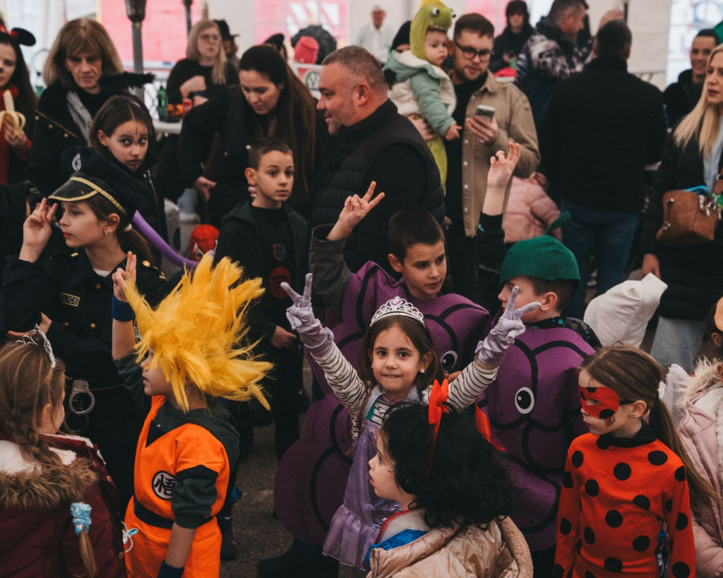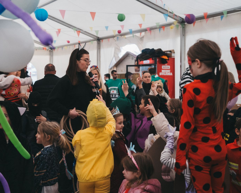 Dječji program započeo je u 16.30 sati, kada su animatori preuzeli pozornicu i pobrinuli se za zabavu najmlađih. Igre, ples, smijeh i šarenilo kostima ispunili su veliki šator na igralištu OŠ Cim, stvarajući pravu karnevalsku atmosferu.