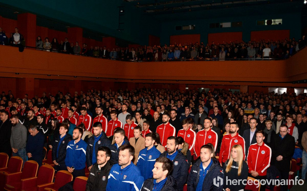 Dvorana je bila ispunjena do posljednjeg mjesta. Bila je tu obitelj Bandić, prijatelji, igrači i uprave HŠK Zrinjski i NK Široki Brijeg, navijačke skupine Ultrasi i Škripari.