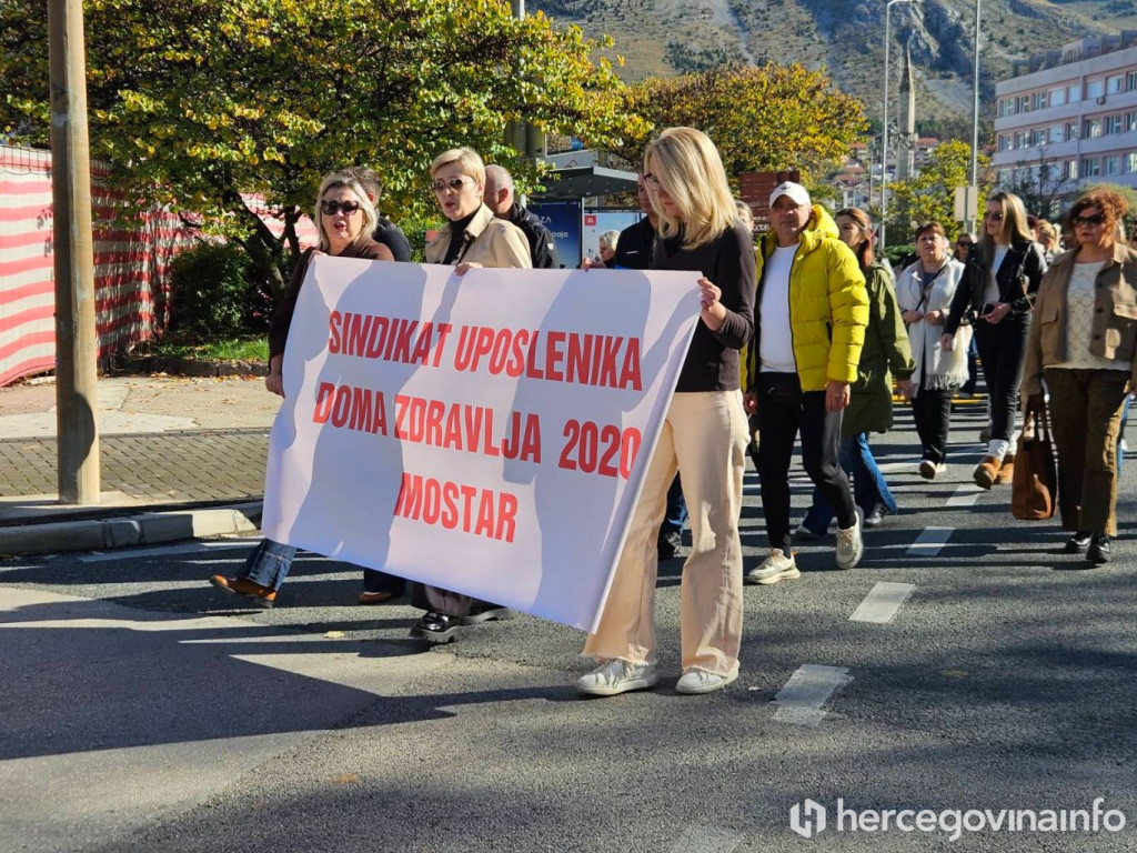 Drugi put u manje od mjesec dana, zdravstveni djelatnici Hercegovačko-neretvanske županije izišli su na ulice Mostara. U organizaciji Nezavisnog sindikata zaposlenika Sveučilišne kliničke bolnice Mostar jutros je započela prosvjedna šetnja radnika, koji traže poštivanje radničkih prava i početak ozbiljnih pregovora o novom kolektivnom ugovoru.