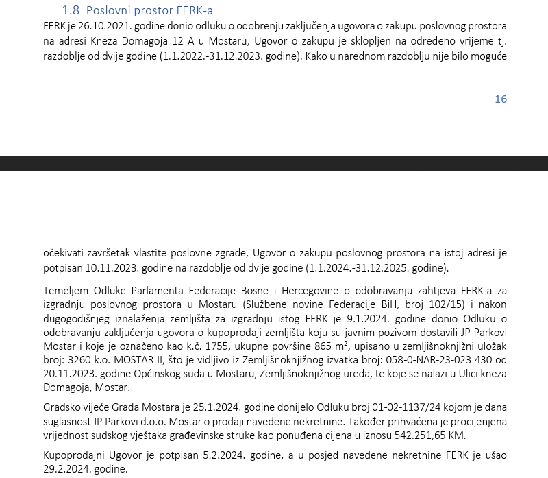 Podsjetimo, Parlament Federacije BiH još je 2015. godine donio odluku kojom se FERK-u odobrava izgradnja vlastitog poslovnog prostora u Mostaru, a višegodišnja potraga za prikladnom lokacijom sada je okončana realizacijom ove kupoprodaje.