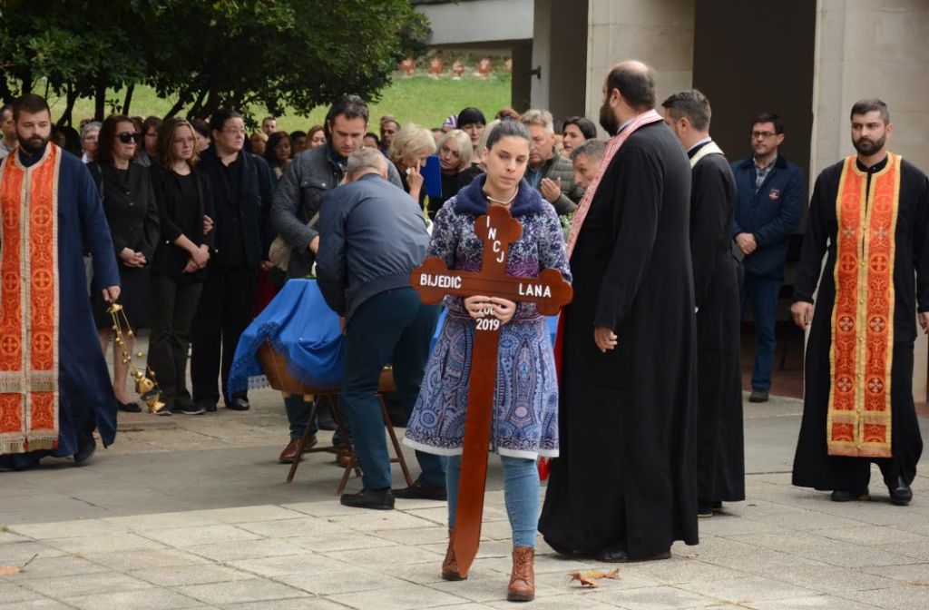 Na Gradskom groblju Sutina u Mostaru od devetnaestogodišnje Lane Bijedić čije je tijelo pronađeno prije tri dana u mjestu Studenci kod Ljubuškog, oprostili su se članovi obitelji, prijatelji, kolege, te brojni Mostarci koji su željeli odati počast preminuloj djevojci.