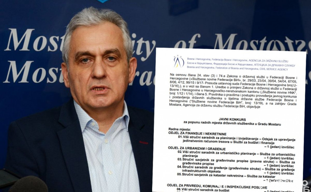 Sredinom siječnja objavljen je natječaj putem kojeg se traži devet novih državnih službenika u Gradu Mostaru. Isti će biti raspoređeni u Odjel za financije i nekretnine, Odjel za urbanizam i građenje te Odjel za gospodarstvo, komunalne i inspekcijske poslove.