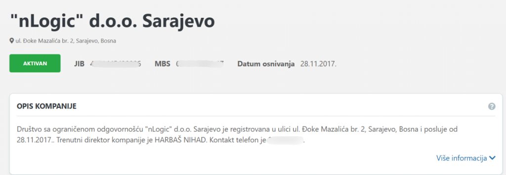 nLogic d.o.o. Sarajevo je konzultantska firma osnovana 2017. godine, specijalizirana za oblasti energetske učinkovitosti, obnovljivih izvora energije, klimatskih promjena i održivog razvoja. Sjedište firme nalazi se na adresi Đoke Mazalića 2 u Sarajevu, a vlasnik i direktor je Nihad Harbaš, poznat kao energetski stručnjak i konzultant u Bosni i Hercegovini.