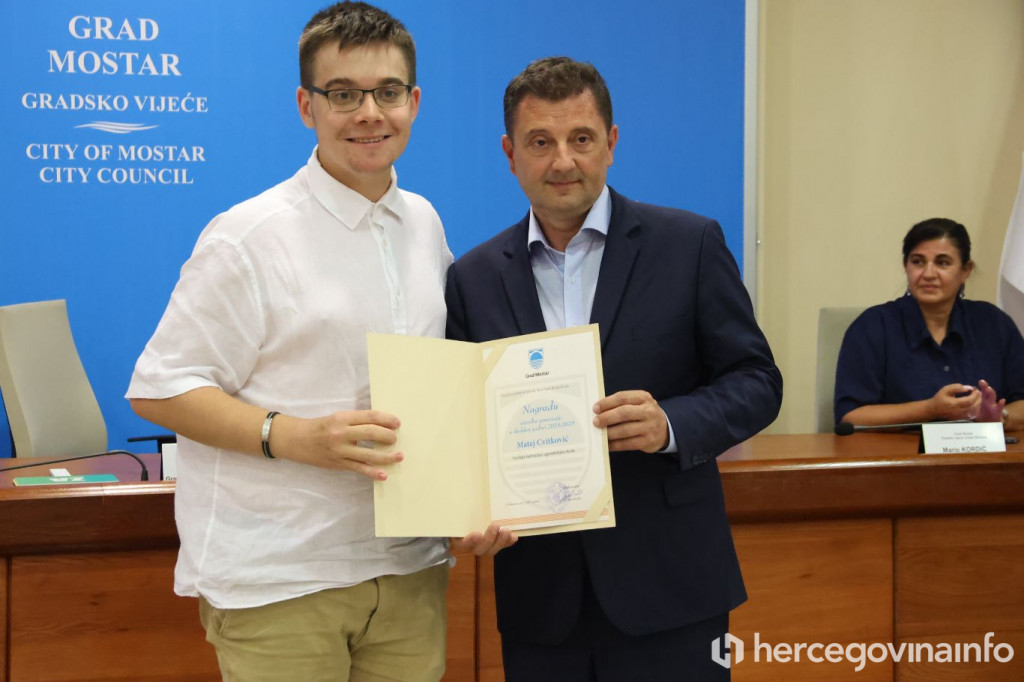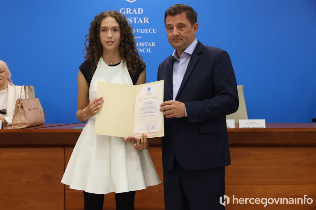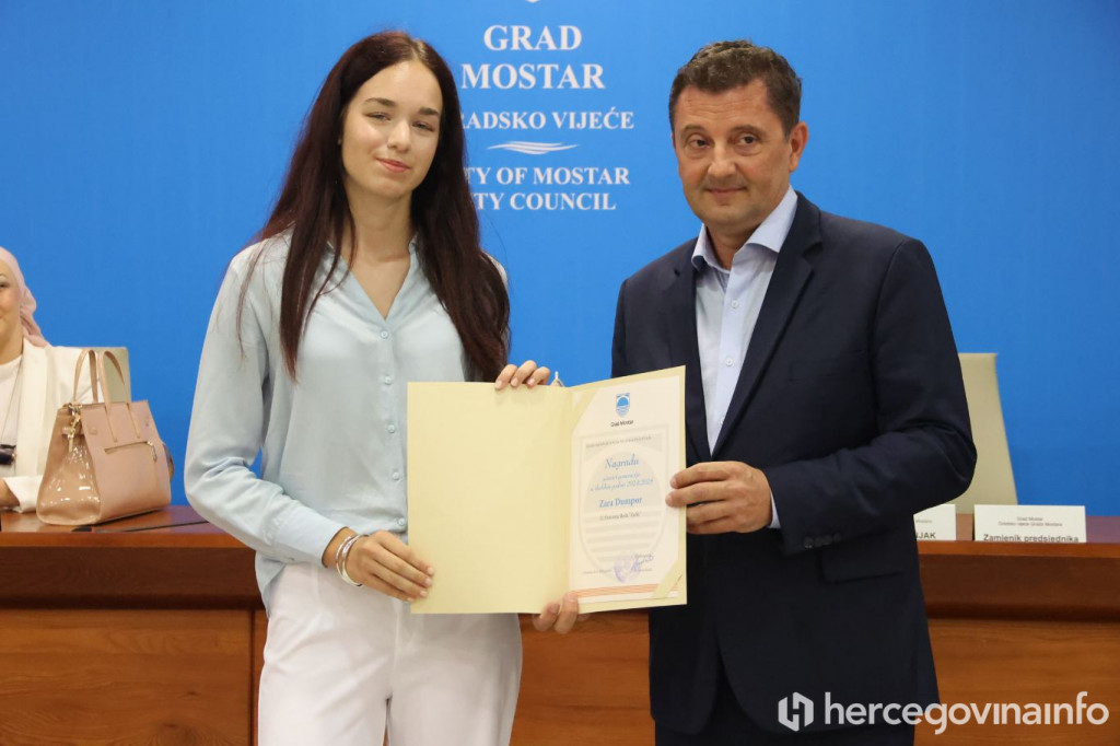 U znak priznanja za izniman uspjeh i zalaganje tijekom školovanja, Grad Mostar je danas u Gradskoj vijećnici svečano dodijelio nagrade učenicima generacije osnovnih i srednjih škola. Riječ je o tradicionalnom događaju kojim se simbolično zatvara školska godina i odaje počast najboljima među maturantima.
