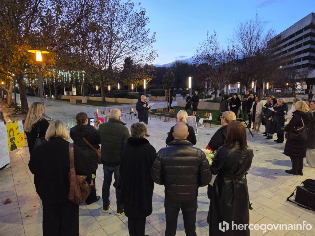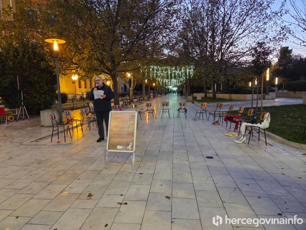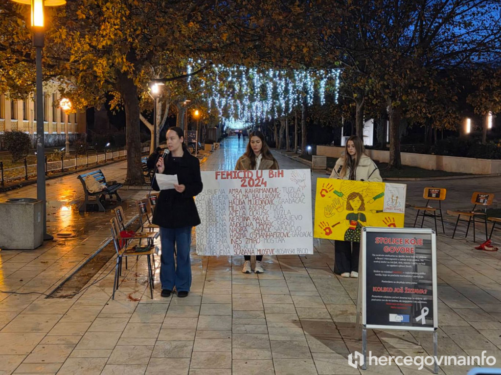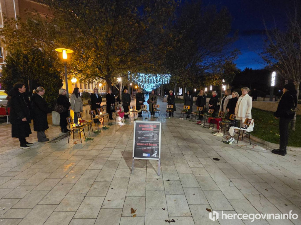 Na Španjolskom trgu u Mostaru u srijedu 26. studenoga održana je umjetničko–aktivistička postavka pod nazivom „Stolice koje govore“, u organizaciji inicijative Građani/ke Mostara. Performans je započeo u 16:30 sati, a građani su pozvani da donesu cvijet kojim su simbolično odali počast ubijenim ženama.