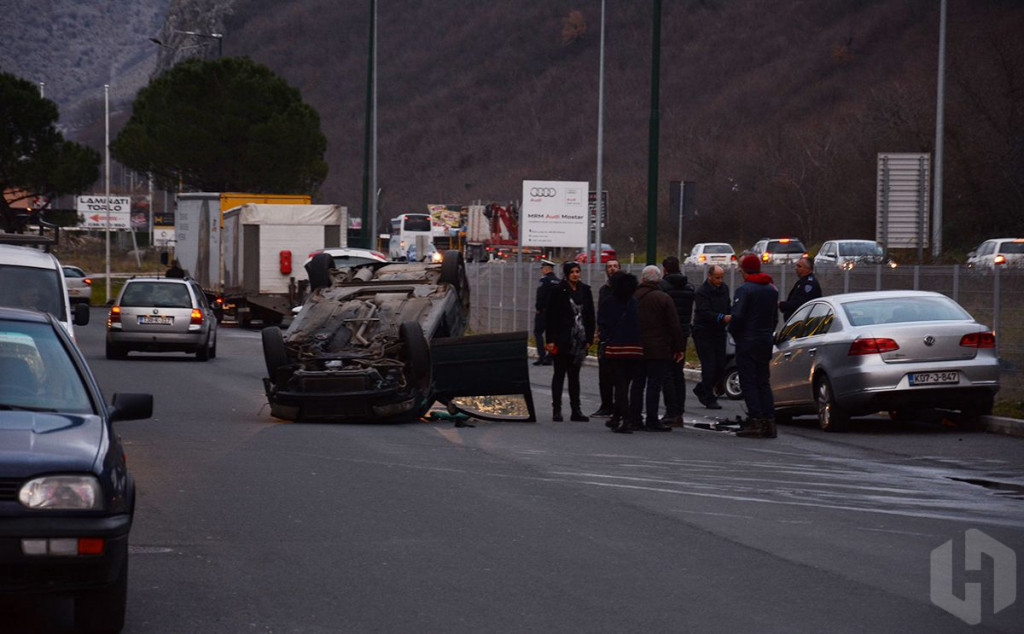FOTO NA ULAZU U MOSTAR Automobil na krovu, jedna osoba ozlijeđena