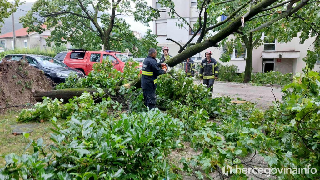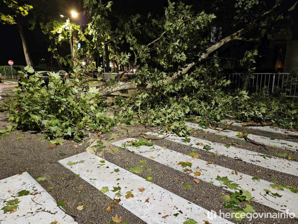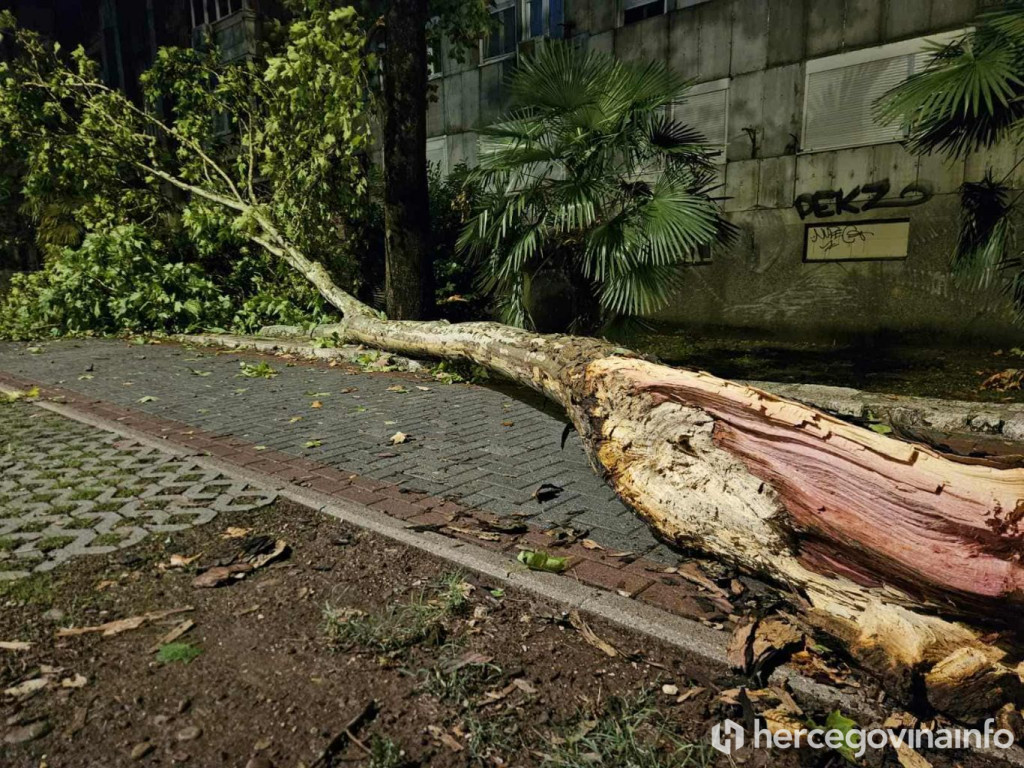 Mostar je sinoć u kratkom vremenu zahvatilo snažno olujno nevrijeme koje je iza sebe ostavilo veliku štetu. Vjetar je lomio stabla, oštetio automobile i pojedine objekte, a vatrogasci su imali više intervencija na terenu.