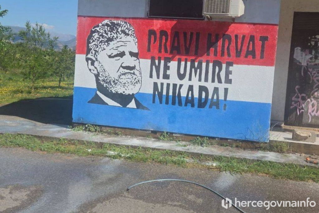 Prebojan mural posvećen Praljku u naselju Ortiješ, ubrzo isprana boja i Praljak opet osvanuo
