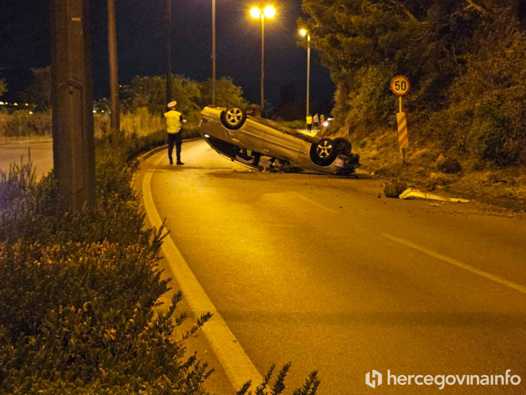 FOTO Prometna nesreća u Mostaru, Mercedes završio na krovu