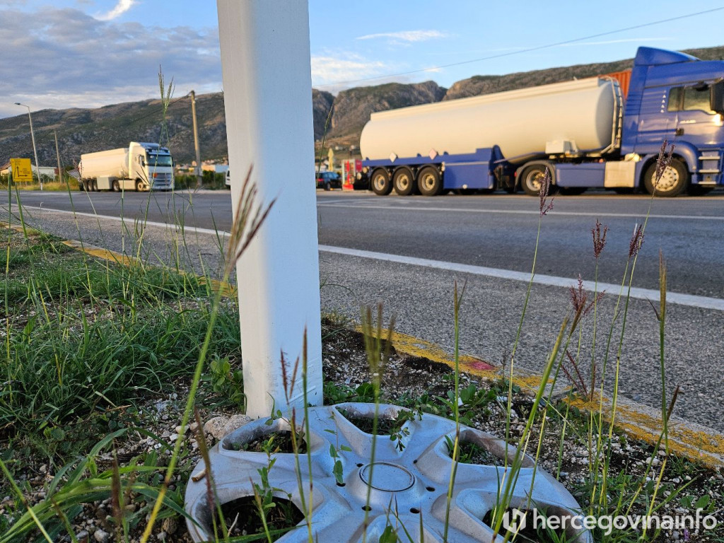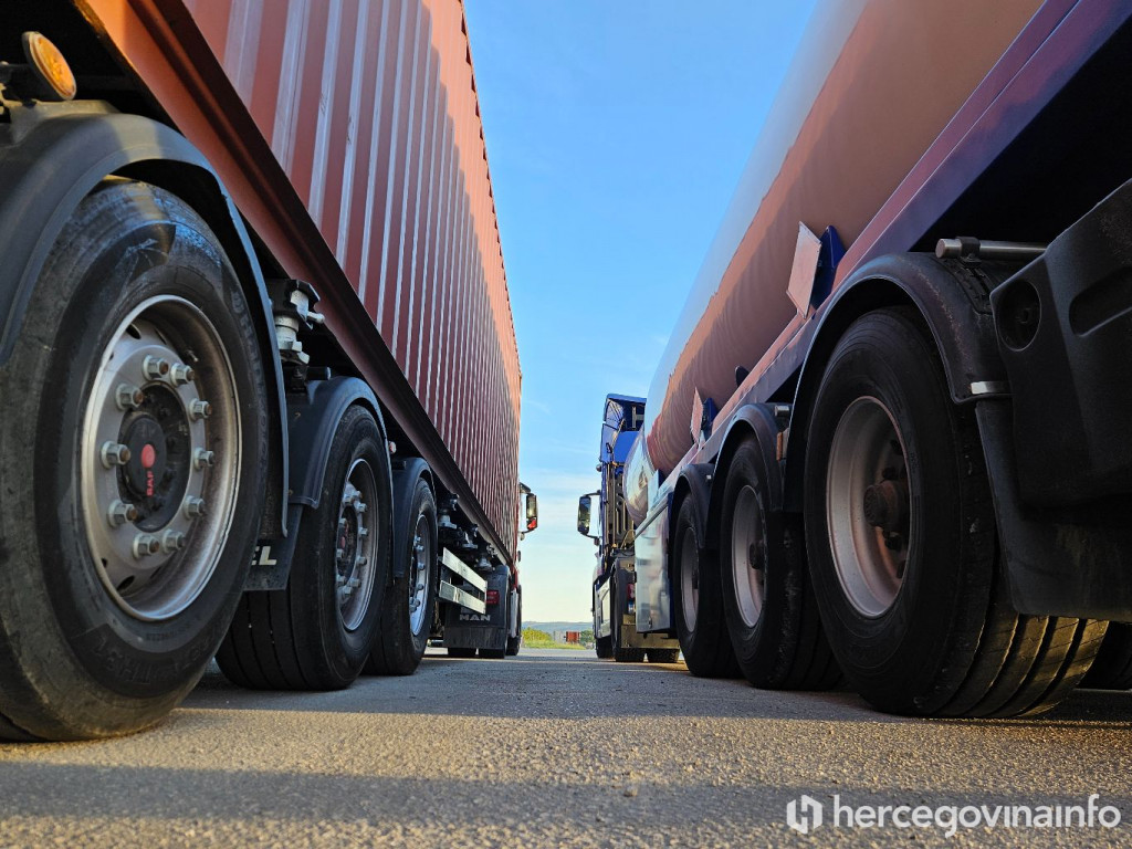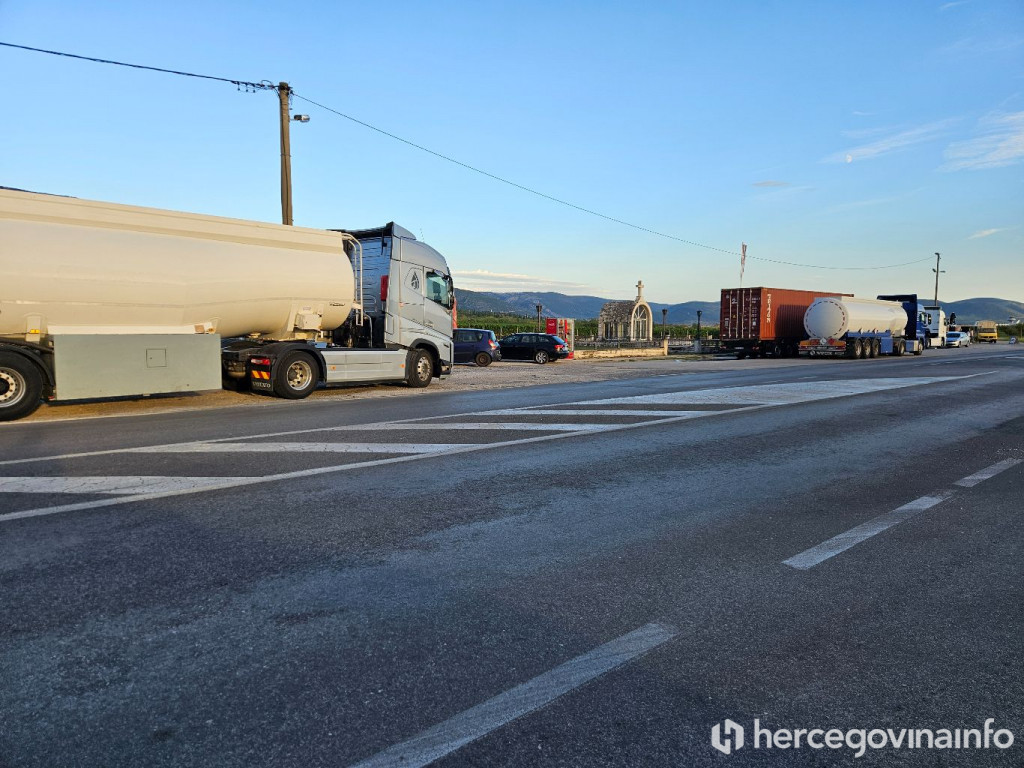 Na terenu se i večeras vidi nekoliko teretnih vozila, među kojima su cisterne i šleperi, parkiranih uz prometnicu na izlazu iz Mostara prema jugu. Vozači se postupno razilaze, a promet se normalizira, iako se na dionici povremeno stvaraju manja usporenja.