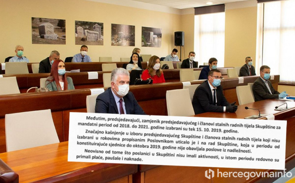 "Konstituirajuća Skupština HNŽ-a održana je 23.11.2018. godine, a izbor predsjedavajućeg Skupštine i članova radnih tijela izvršen je tek 15.10.2019. godine. Pošto se u ovom razdoblju nisu održavale sjednice Skupštine, kao ni sjednice radnih tijela, ne možemo potvrditi da su izabrani dužnosnici, odnosno zastupnici, u potpunosti obavljali dužnosti utvrđene Poslovnikom Skupštine", stoji u izvješću objavljenom prije dvadesetak dana.