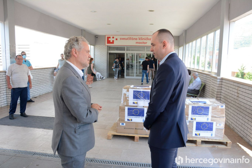 Šef Delegacije EU i specijalni predstavnik EU u Bosni i Hercegovini veleposlanik Johann Sattler je u Mostaru u prisustvu ministrice civilnih poslova BiH Ankica Gudeljević, uručio vrijednu medicinsku pomoć Sveučilišnoj kliničkoj bolnici Mostar, a potom 5.850 doza COVID-19 Pfizer cjepiva Zavodu za javno zdravstvo Federacije BiH.