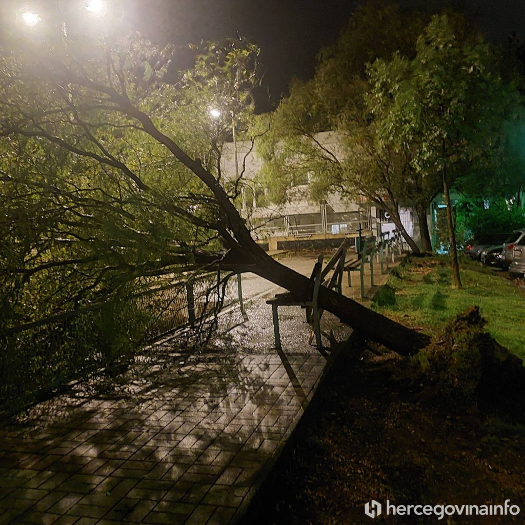 FOTO/VIDEO Snažno nevrijeme poharalo Mostar, čupalo stabla iz korijena i lomilo grane