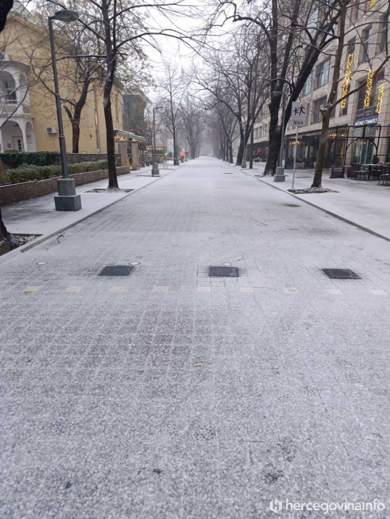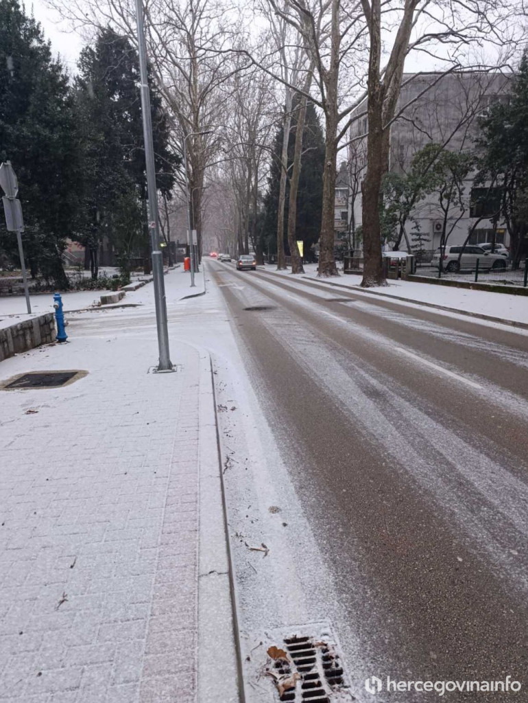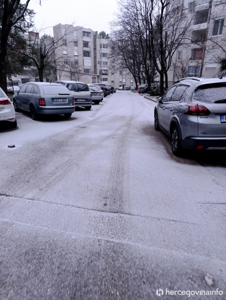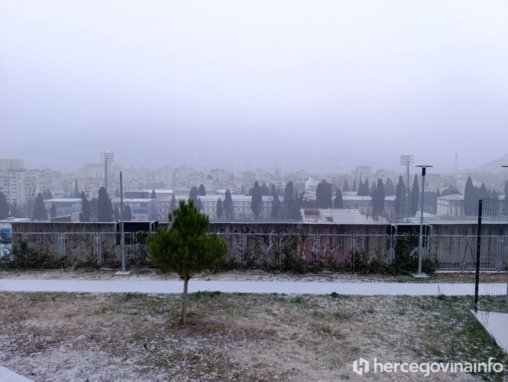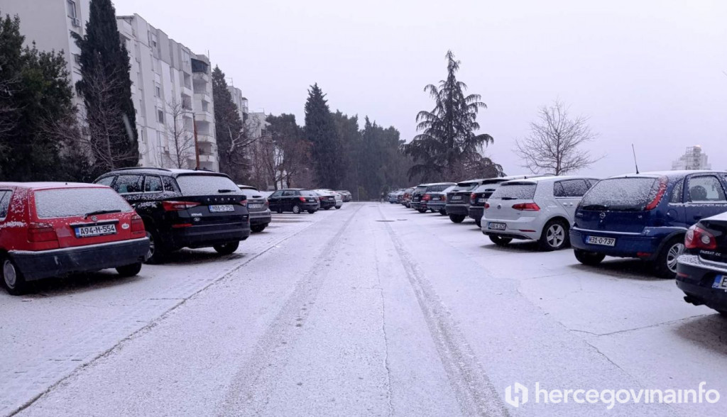 Snijeg je jutros pao u Mostaru i zabijelio ulice grada. Prema podacima trenutna temperatura iznosi minus 2 stupnja. Padaline su počele u ranim jutarnjim satima, a snijeg se zadržao na kolnicima, parkiranim vozilima i zelenim površinama.