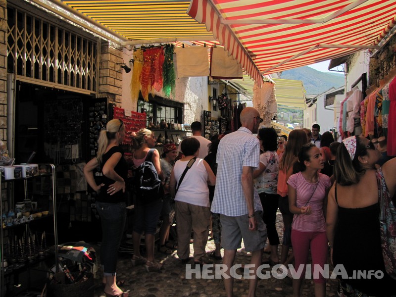 ... odlučila se u malu šetnju Starim gradom u Mostaru. U prijepodnevnim satima primijetili smo veći broj turista u staroj gradskoj jezgri koji su se najviše zadržavali oko štandova sa suvenirima, dok su restorani u staroj gradskoj jezgri bili poprilično prazni.