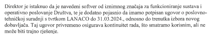 Posebno je istaknuto da postoje prethodna negativna iskustva i izazovi vezani uz najam softverskih rješenja, zbog čega je ukazano na potrebu za dodatnim oprezom i preciznim ugovornim definiranjem svih aspekata buduće suradnje.