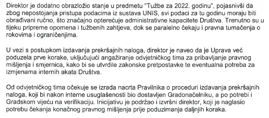 Uz to, tužbeni zahtjevi za neplaćene kazne iz 2022. godine nisu nikada pokrenuti, pa su mnogi slučajevi otišli u zastaru – bez ikakve odgovornosti uprave.