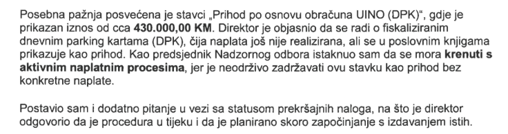 Iako direktor JP Mostar Parking na sjednici NO iz veljače 2024. navodi prihod od oko 673.000 KM od vinjeta, ti prihodi nisu transparentno prikazani u financijskim izvještajima.