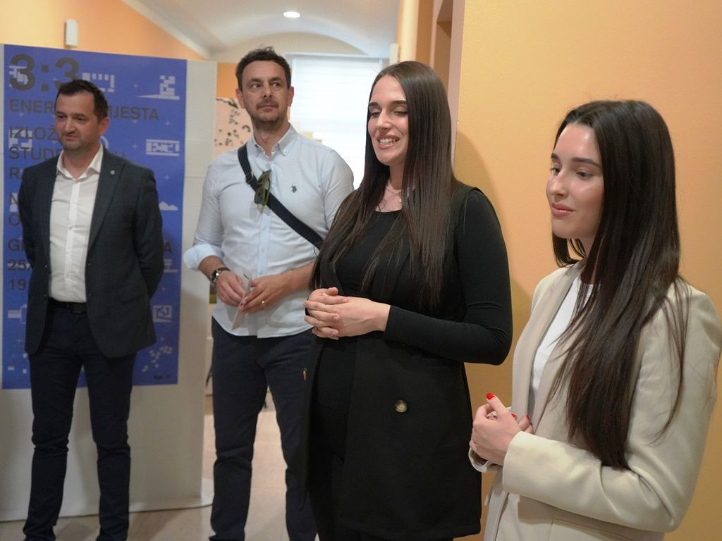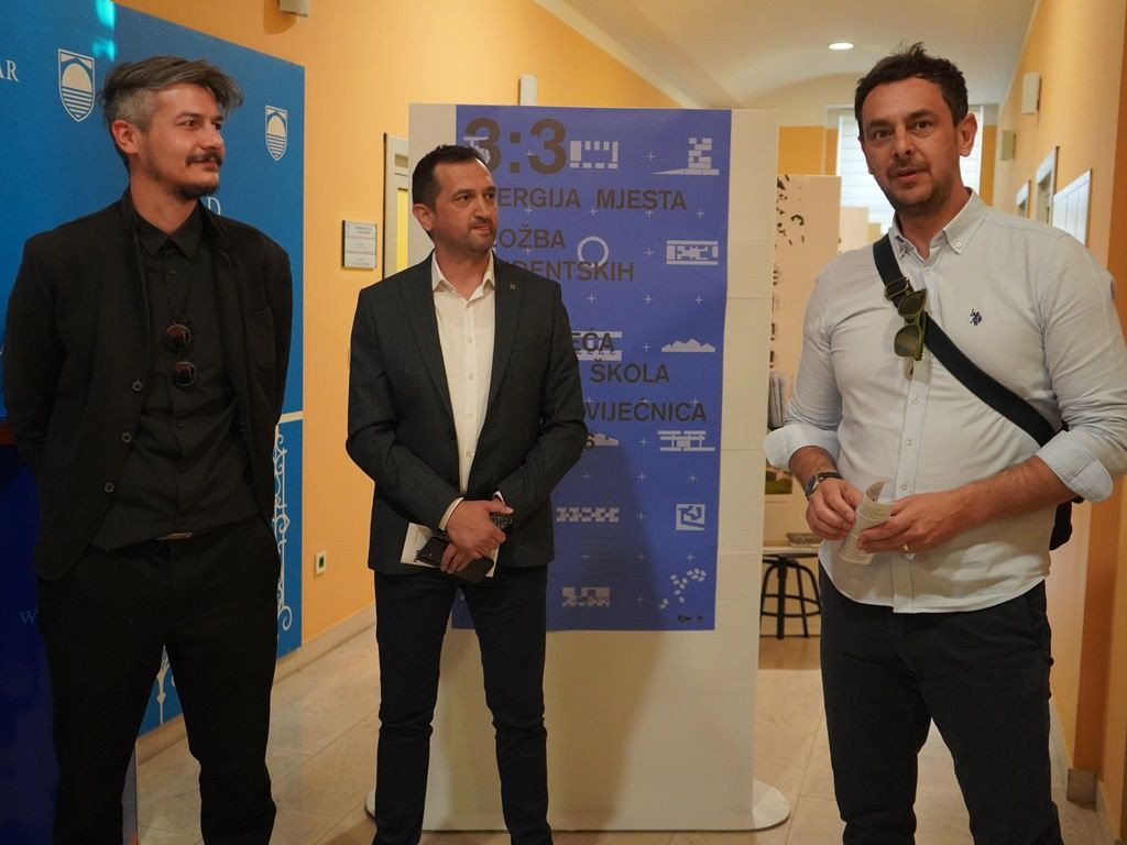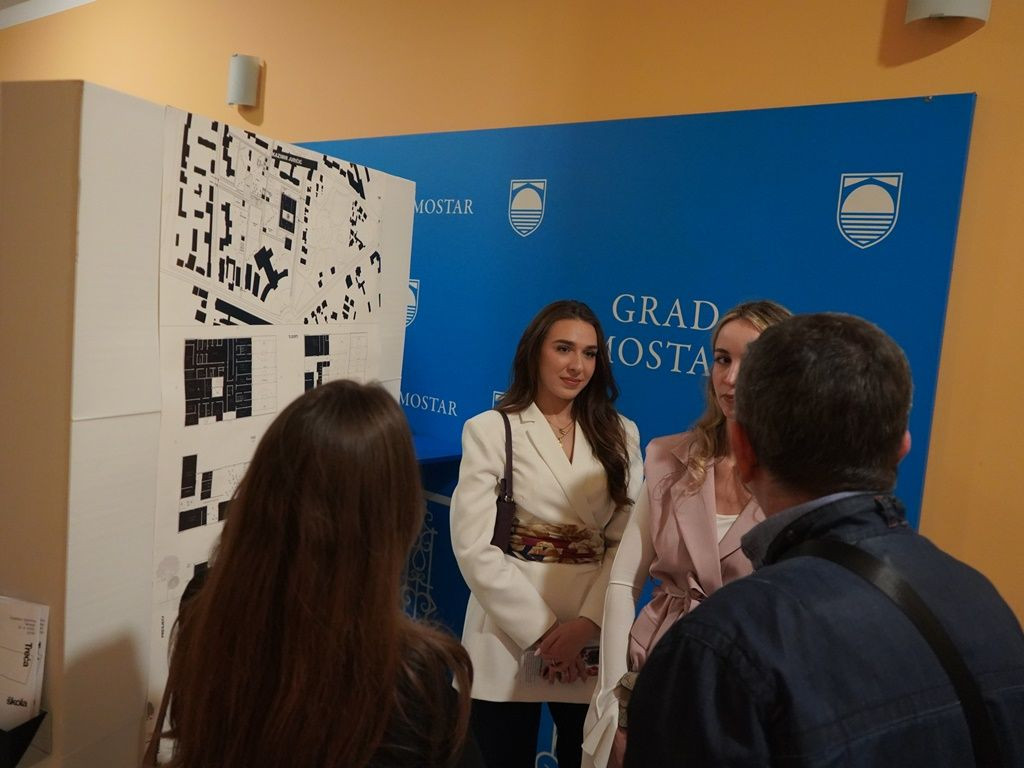 U Gradskoj vijećnici Grada Mostara večeras je otvorena izložba 3:3 Energija mjesta, koja donosi pregled radova studenata treće godine preddiplomskog sveučilišnog studija Arhitekture i urbanizma Sveučilišta u Mostaru, nastalih u okviru kolegija Zgrade društvenog standarda.