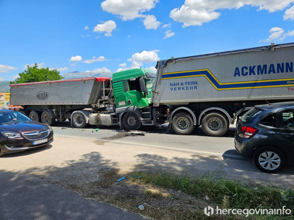 Zbog prometne nezgode u kojoj su sudjelovala dva kamiona u mjestu Buna na magistralnoj cesti M-17 Mostar-Žitomislići promet se odvija usporeno, saznaje Hercegovina.info.