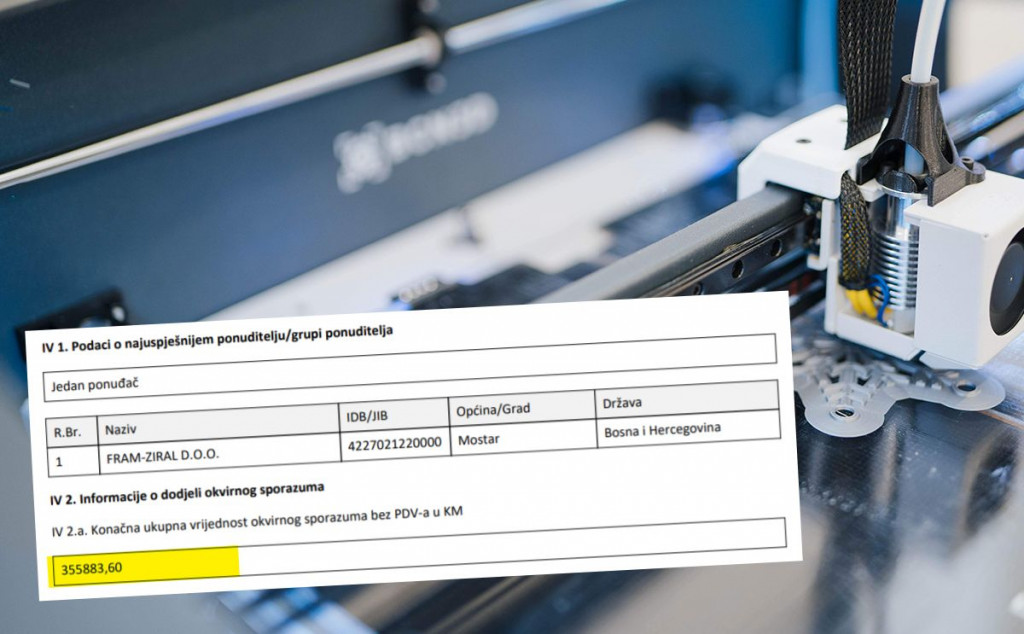 Unatoč tome što sada imaju svoju vlastitu tiskaru, Sveučilište u Mostaru je objavilo nabavku te na osnovu iste i dodijelilo Ugovor o nabavki usluga tiska za Sveučilište u Mostaru. Tako je posao od 355.883 maraka bez PDV-a dodijeljen tvrtci Fram-Ziral d.o.o. Ugovor bi trebao trajati od 03.12.2020. godine do 03.06.2022. godine.