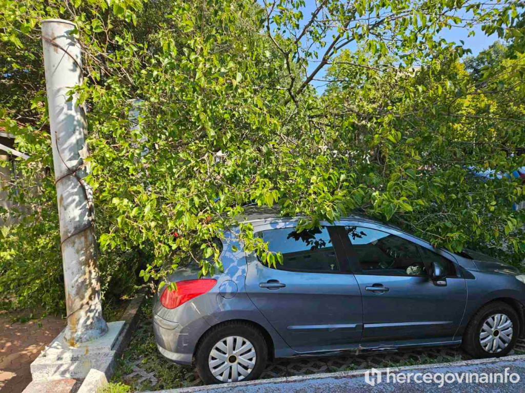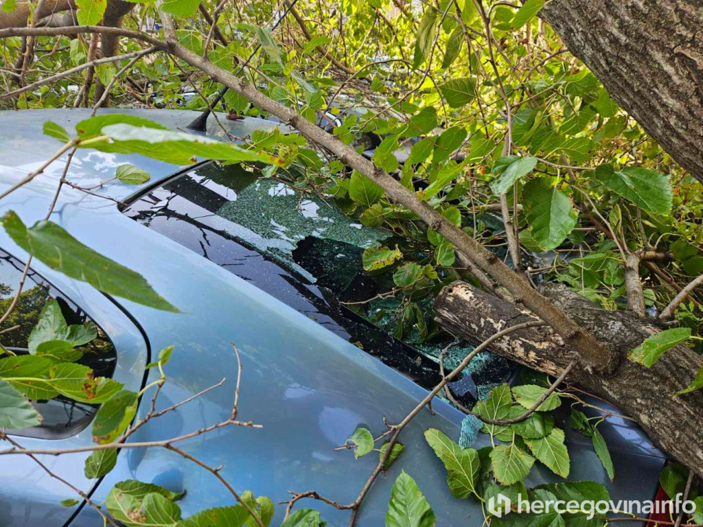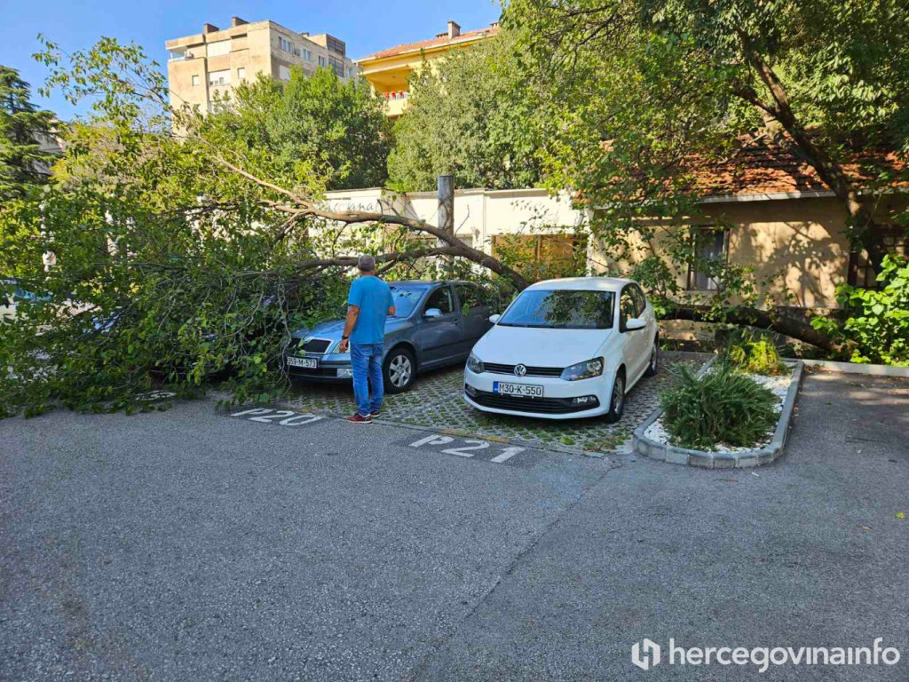 Na parkingu ispred Đačkog doma u Mostaru, u neposrednoj blizini zgrade Vlade Hercegovačko-neretvanske županije, danas je došlo do incidenta kada je stablo palo na tri parkirana automobila.