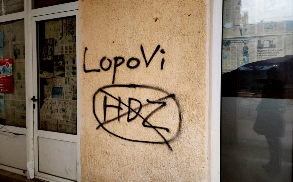 Podsjetimo, na ulicama Mostara osvanuli su grafiti 'HDZ lopovi'.