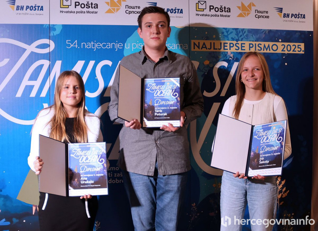 Nagrade im je uručio predsjednik Uprave Hrvatske pošte Mostar Mate Rupčić, a posebna priznanja – slušalice i power bank – autorima prva tri nagrađena pisma dodijelila je predsjedateljica Vijeća Agencije za poštanski promet BiH Ljiljana Erkić.