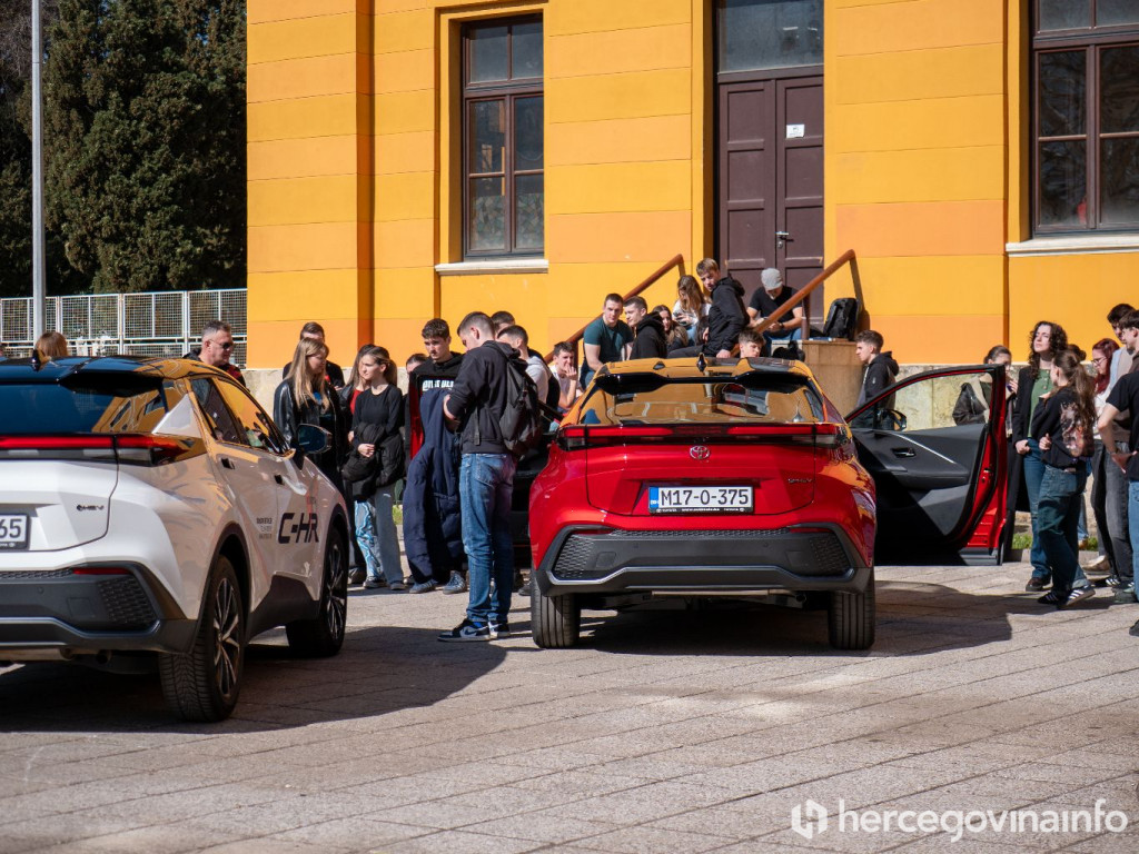 Učenici Gimnazije Mostar imali su priliku sudjelovati u edukativnom programu posvećenom mobilnosti budućnosti, sigurnosti u prometu i razumijevanju modernih automobilskih tehnologija. U sklopu gostovanja Toyota hibridne škole sudionicima su predstavljeni temeljni principi funkcioniranja elektrificiranih automobila te njihov utjecaj na smanjenje emisija, kao i druge ključne teme vezane uz elektrificirana vozila. Edukacija je uključivala i sadržaje vezane uz odgovorno ponašanje u prometu i razumijevanje rizika na cestama, čime se doprinosilo razvoju sigurnosne kulture među budućim vozačima.