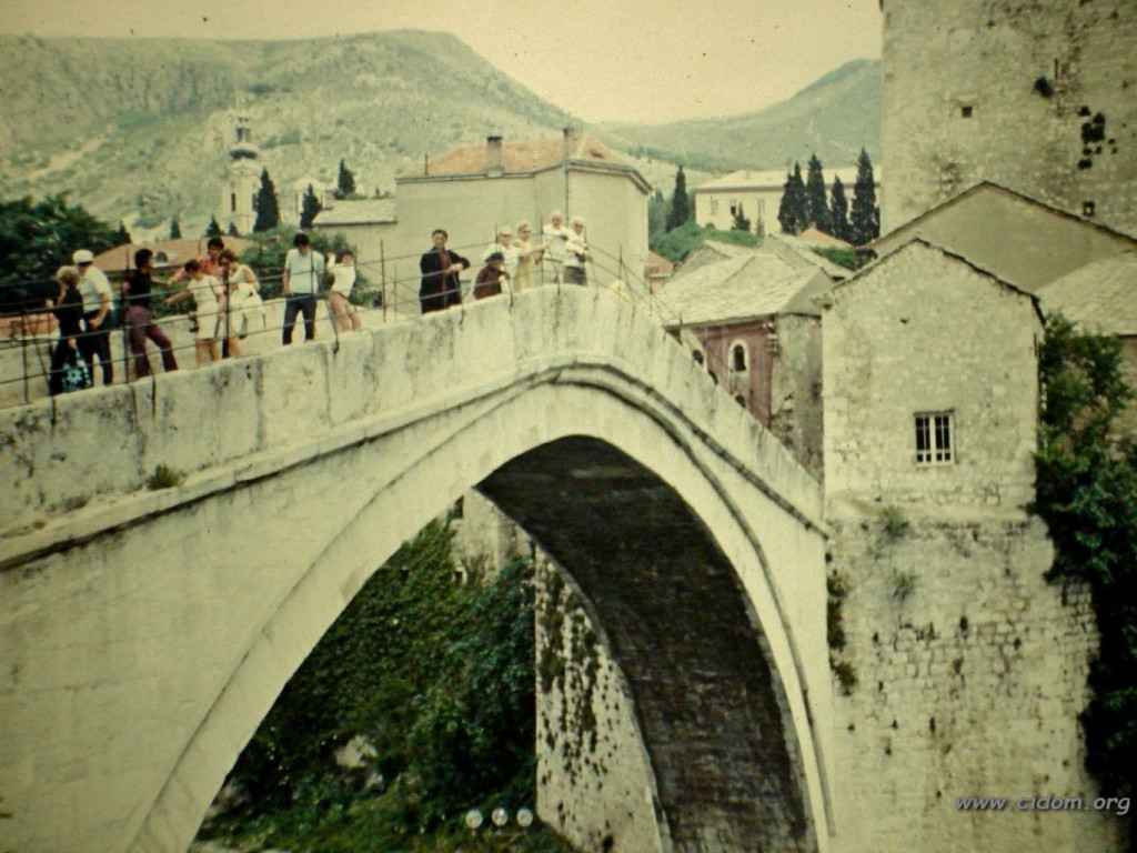 Na videu se može vidjeti kako su i tada mostarci uživali pod mostom na Neretvi.