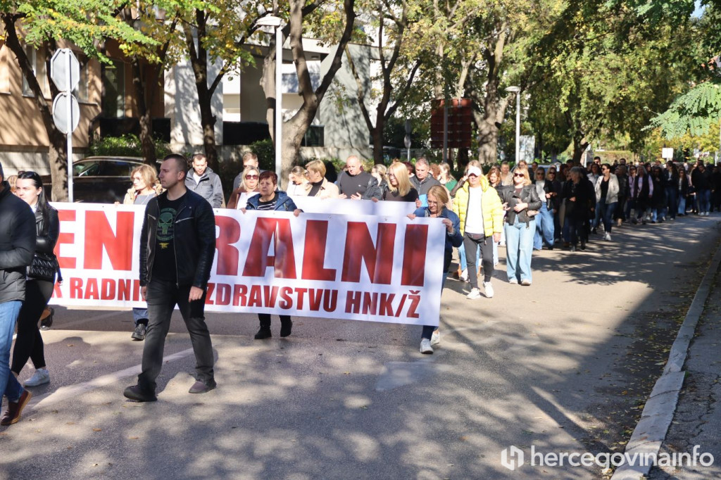 Drugi put u manje od mjesec dana zdravstveni djelatnici Hercegovačko-neretvanske županije izišli su na ulice Mostara. U organizaciji Nezavisnog sindikata zaposlenika Sveučilišne kliničke bolnice Mostar jutros je započela prosvjedna šetnja radnika koji traže početak ozbiljnih pregovora o novom kolektivnom ugovoru.