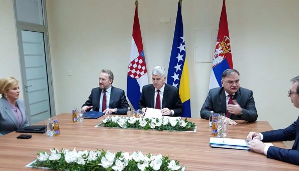 Nakon sastanka članova Predsjedništva BiH s predsjednicom Hrvatske Kolindom Grabar Kitarović, koji bi trebao završiti oko 13,30, uslijedit će, oko 13,45 sati sastanak sa šefovima diplomacije BiH Igorom Crnadkom, Srbije Ivicom Dačićem i Hrvatske Marijom Pejčinović Burić, u hotelu Mepas.