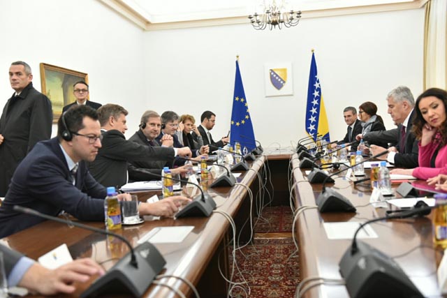 Tema sastanaka je bio proces EU integracija Bosne i Hecegovine, te napredak koji je napravljen u tom smislu. Članovi Predsjedništva BiH su kazali da europski put nema alternativu, unatoč trenutnoj situaciji, te su izrazili uvjerenje kako će se sve obveze ispuniti na vrijeme, kako bi BiH u bližoj budućnosti mogla dobiti kandidacioni status.
