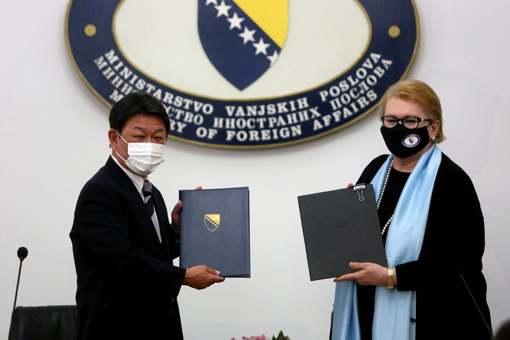 Ministar vanjskih poslova Japana Toshimitsu Motegi boravio je u službenom posjetu BiH, a nakon susreta s ministricom vanjskih poslova te zemlje Biserom Turković potpisan je sporazum kojim je aktivirana ranije odobrena pomoć od 500 milijuna japanskih jena namijenjena prije svega opremanju sigurnosnih agencija u BiH izravno zaduženih za nadzor granice i kontrolu ilegalnih migracija.