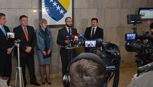Šef Izaslanstva EU u BiH i specijalni predstavnik EU Lars - Gunnar Wigemark podsjetio je na nedavno objavljenu Strategiju EU za zapadni Balkan, koja će biti korištena kao temelj za naredne aktivnosti svih šest zemalja u pogledu EU integracija. Napomenuo je da krajem mjeseca u posjetu BiH dolaze predsjednik Europske komisije Jean-Claude Juncker, visoka predstavnica Unije za vanjske poslove i sigurnosnu politiku Federica Mogherini i povjerenik EU za politiku susjedstva i pregovore o proširenju Johannes Han, koji će prilikom posjete istaknuti tri bitne stvari i poslati važne poruke.