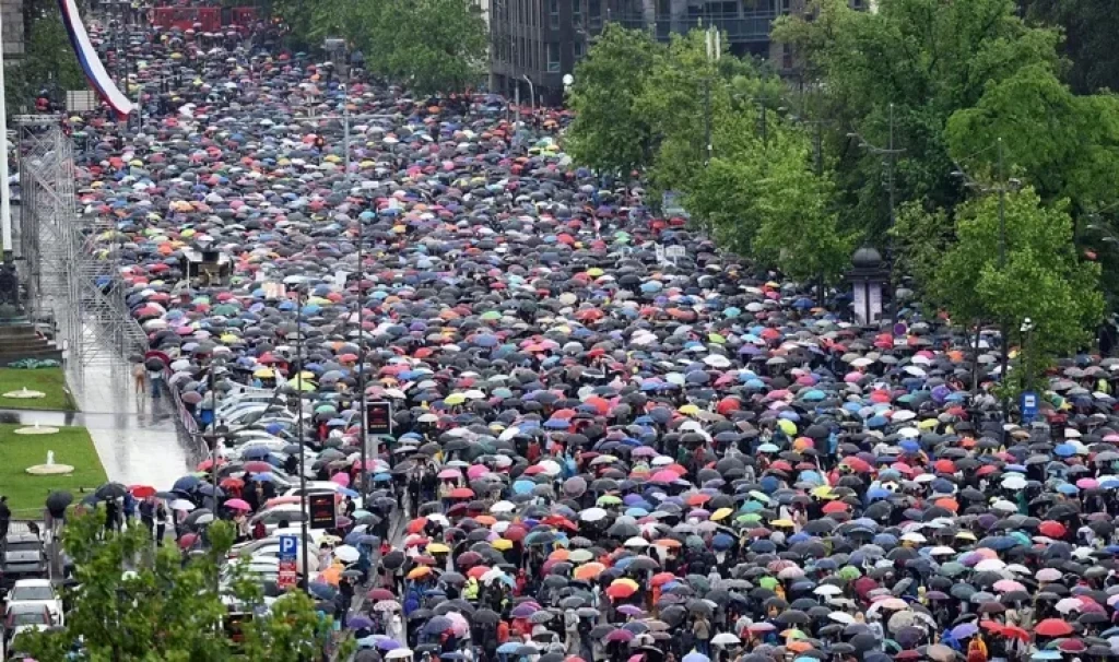 Na prosvjede je početkom svibnja pozvala proeuropska oprba, poslije dvije masovne pucnjave u kojima je ubijeno 18 mladih ljudi, a 20 ih je ranjeno.