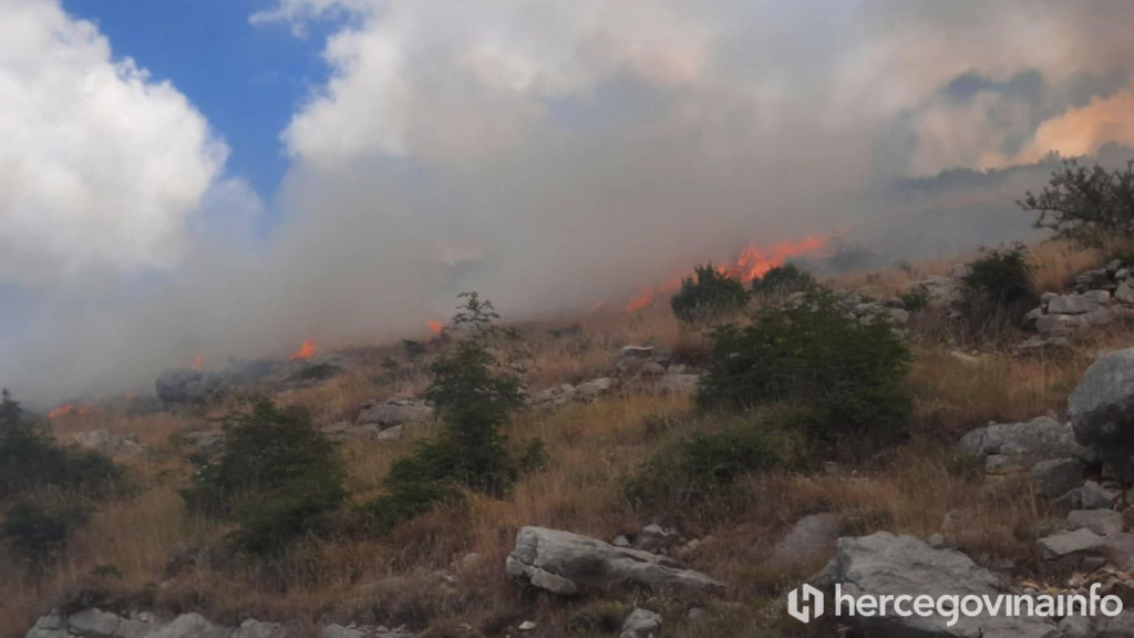 Veliki požari noćas su zahvatili šire područje Trebinja, a vatra je aktivna na više lokacija. Najteže je u Popovom Polju, selima Tulje i Mrkonjići, dok novi požar prijeti kućama u Žakovu.