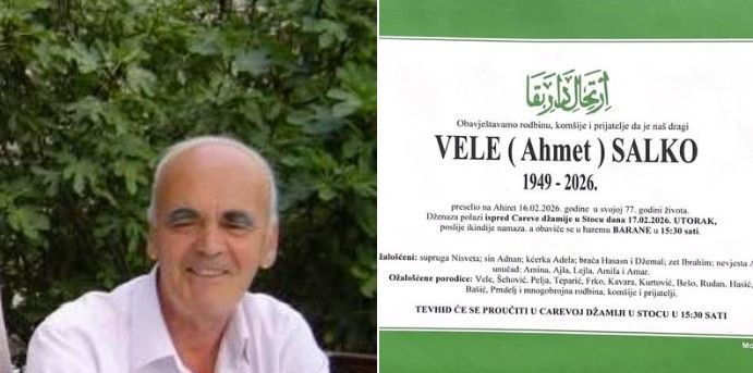Salko Vele, ugledni Stočanin, specijalist medicinske biokemije i osnivač privatnog laboratorija Vele Lab, preminuo je, ostavivši dubok trag u području laboratorijske dijagnostike u Hercegovini.